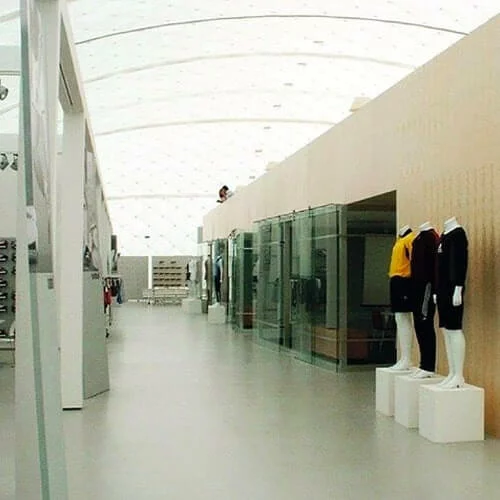 - Weltweit einmalige Photovoltaik-Dünnschicht-Module auf den Hallenaußenflächen für zusätzliche Energiegewinnung (bis zu 10 Mal mehr Energie erzeugt, als der Betrieb der Halle benötigt)